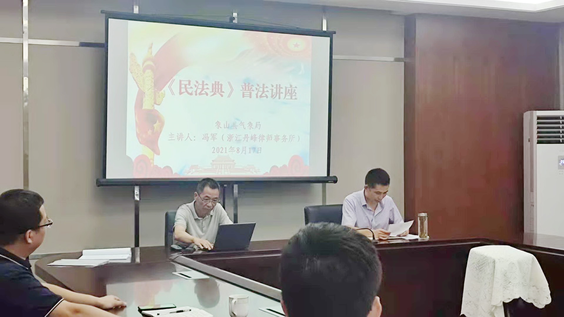 2021年8月17日,浙江丹峰律师事务所冯军律师走进象山县气象局,为气象局全体带去了一场以民法典家庭婚姻编为内容的普法讲座,得到大家好评。